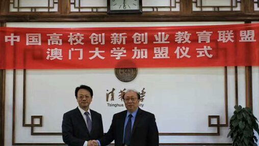4月15日,在清華大學工字廳會議室里舉行了中國高校創新創業教育聯盟-澳門大學創新創業教育研討會暨澳門大學加盟儀式。清華大學副校長王希勤、澳門大學校長趙偉、中國高校創新創業教育聯盟秘書長孫宏斌出席了本次會議,澳門大學內地事務中心主任汪琪、中國創新創業教育聯盟秘書處代表陪同參加。
