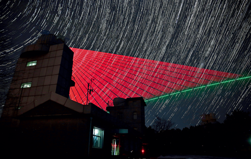 2016年11月28日,河北興隆觀測站,“墨子號”量子科學實驗衛星過境(合成照片)金立旺攝/本刊