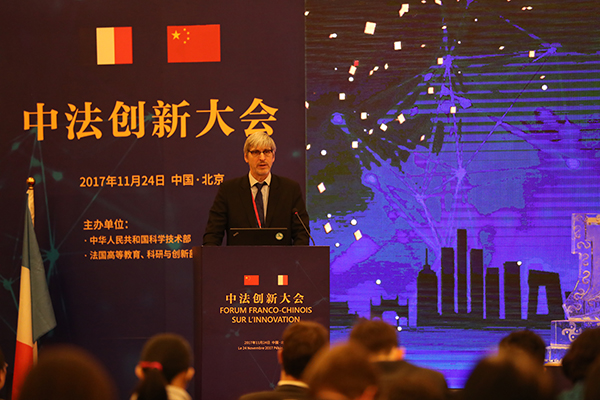 2017年11月24日下午,首屆“中法創(chuàng)新大會”在北京成功舉辦,此次大會是中法高級別人文交流機(jī)制第四次會議的重要配套活動之一,是中法科技界落實(shí)兩國領(lǐng)導(dǎo)人達(dá)成的共識,深化務(wù)實(shí)合作的重要舉措。此次大會由中國科學(xué)技術(shù)部與法國高等教育、科研與創(chuàng)新部主辦。中國科學(xué)技術(shù)部國際合作司司長葉冬柏和法國高等教育、科研與創(chuàng)新部國際與歐洲事務(wù)司司長德尼·德佩歐共同出席開幕式并致辭。