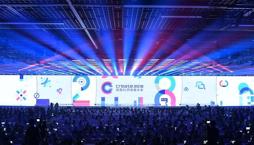 這是百度AI開(kāi)發(fā)者大會(huì)主論壇現(xiàn)場(chǎng)(7月4日攝)。7月4日,百度AI開(kāi)發(fā)者大會(huì)在北京國(guó)家會(huì)議中心舉行。新華社記者李鑫攝