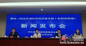 10月25日,河北省政府新聞辦召開解讀《促進縣域經濟高質量發展十條財政政策(試行)》發布會。圖為發布會現場。王偉哲攝 河北新聞網10月25日訊(記者張巖)今天,河北省政府新聞辦召開