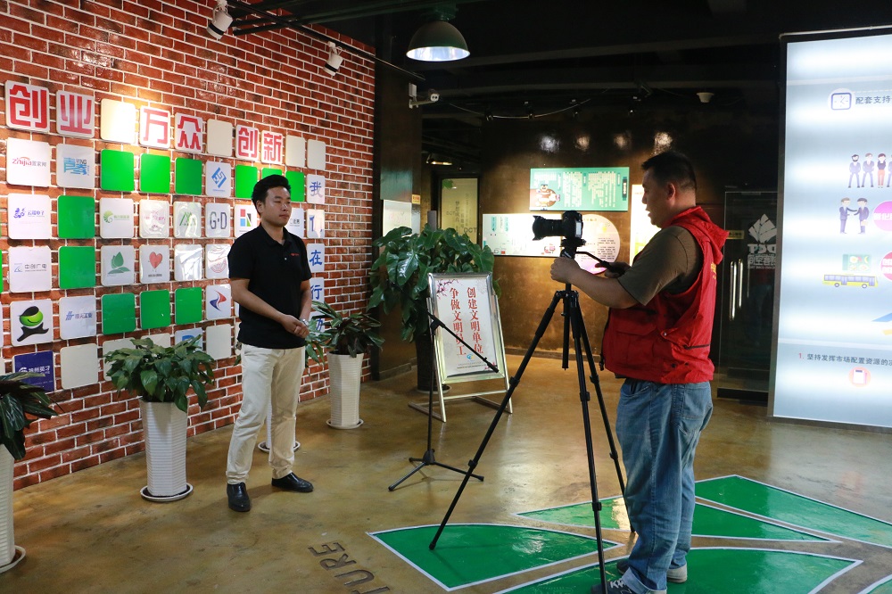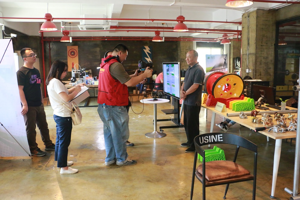 采訪人員首先在DCT創(chuàng)客空間一層創(chuàng)客書吧、項目路演大廳和人才交流展示區(qū)進行了拍攝,還采訪了DCT創(chuàng)客空間工作人員周承樸,周承樸介紹了DCT創(chuàng)客空間的服務理念以及今后將更加積極探索優(yōu)秀的孵化模式,助力更多創(chuàng)客實現(xiàn)夢想。